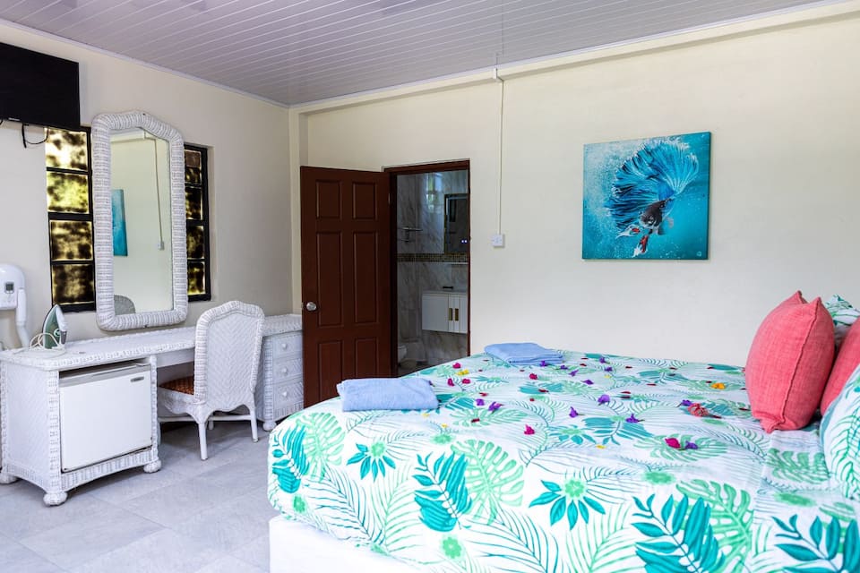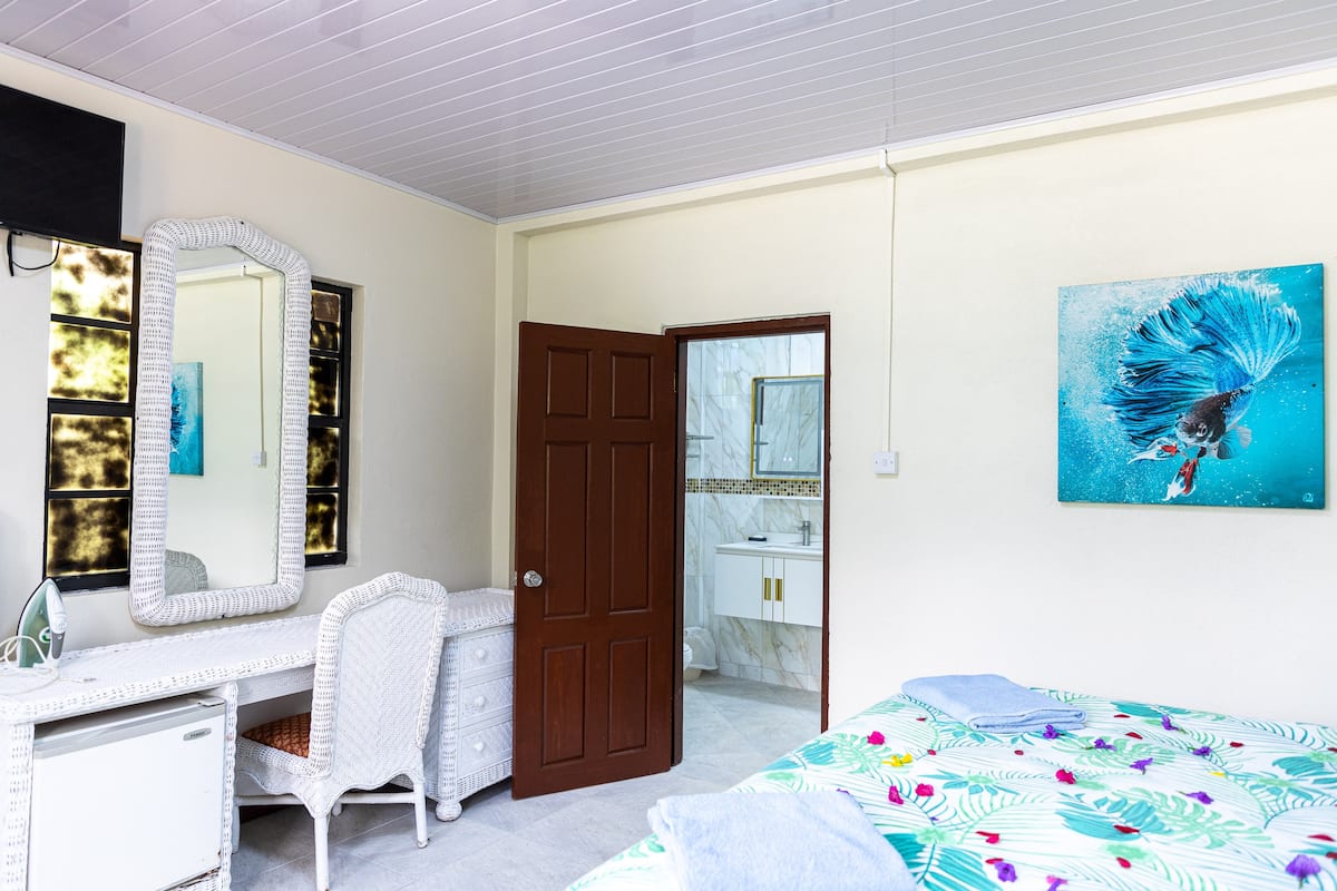 Our stay at JJs was perfect, exactly the experience we were hoping for. The space is clean and comfortable with good AC. Multiple pools to choose from, even had our own private plunge pool. Our host Tricia was super helpful and proactive in communication, and helped book our airport transfer, boat tour and car rental. Overall great experience and value.